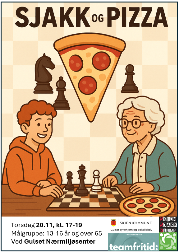 Sjakk og pizza for deg mellom 13-16 og deg over 65!